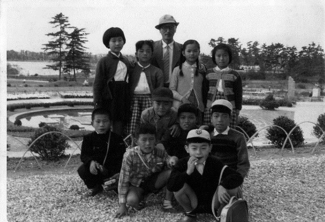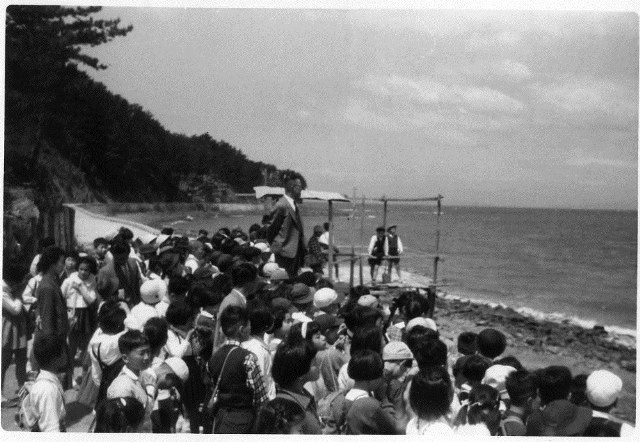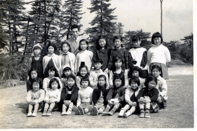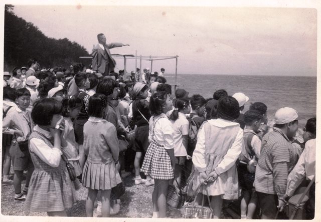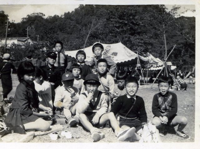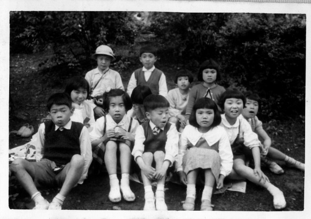 | 昭和33年の遠足風景。4年1組坂部先生のクラスメイトたち. |