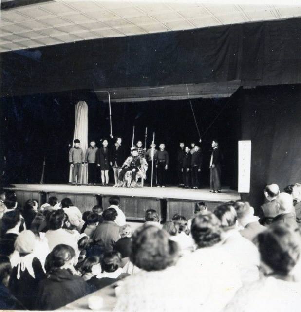 | (写真上)昭和34年3学期の学芸会風景。4年生の劇『裸の王様』。この劇では人前で裸になるのがイヤで主役を辞退した生徒がいたというエピソードが残っている。 |