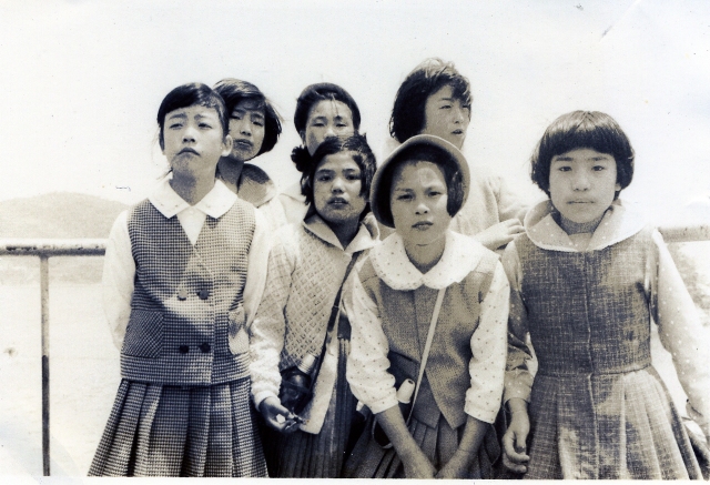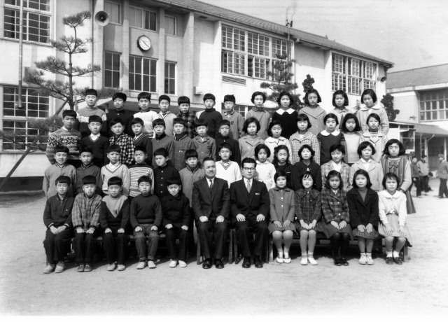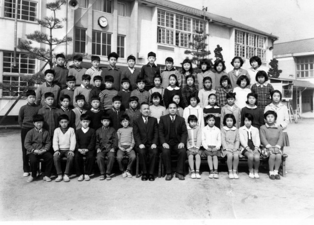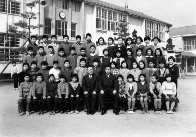 | 卒業を記念にクラスで集合写真。私たちの世代には小学校の卒業アルバムというものがなかった。写真上は6年1組 |