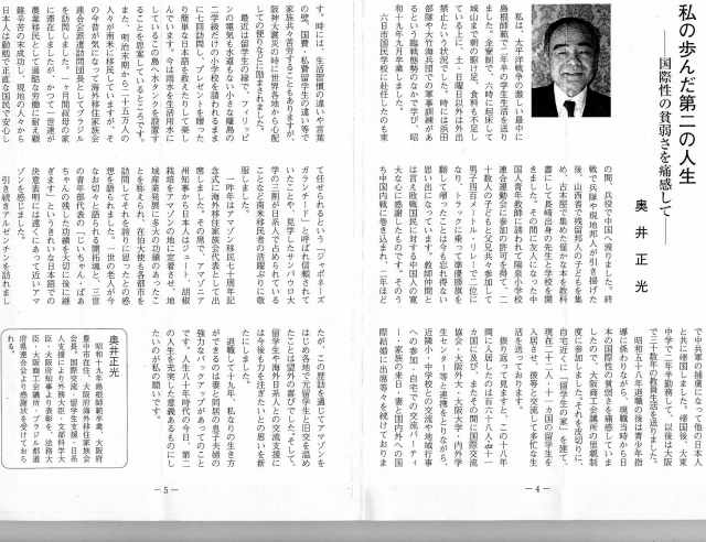 6年2組の担任だった奥井正光先生は教職を退任されたあとも、国際交流事業や留学生支援活動などで、現在もお元気で活躍されています。 |