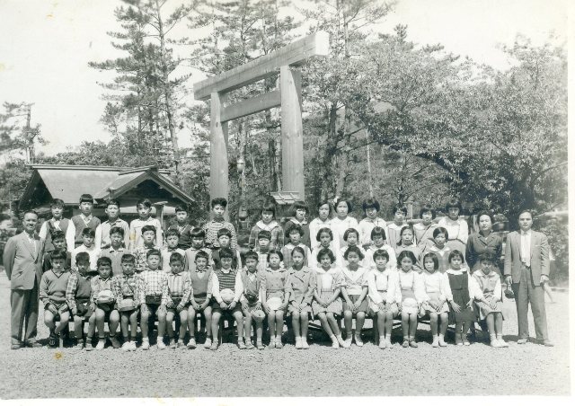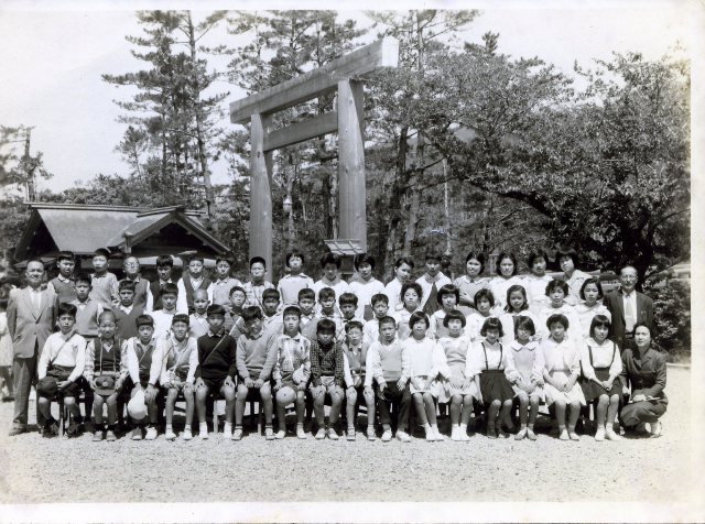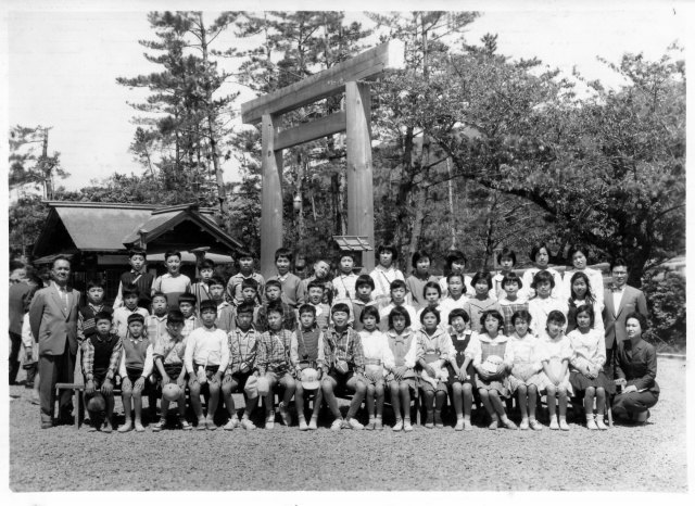 | (写真上)6年生の修学旅行、行き先は伊勢神宮。2組は奥井先生のクラス。 |
