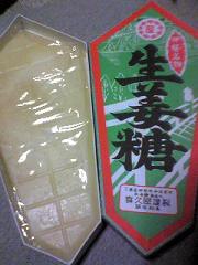 | どう云う訳か知らないが大阪の小学校の修学旅行は伊勢神宮ということになっている。すぐ上の姉もその上の姉も修学旅行はお伊勢さんだった。そして伊勢のお土産といえば「生姜板」と決まっていた。今では「赤福」が有名だが僕らの子供の頃は伊勢土産は「生姜板」。上の姉たちもお土産にこれを買ってきていた。最近の土産物店では「生姜糖」として売っている。ピンクのはニッキ味か・・・。 |