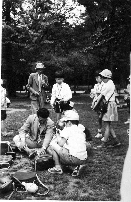 | (写真上)若草山で・・・中央は桑木校長先生(原田小学校五代校長)昭和36年5月18日。 |