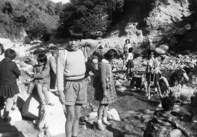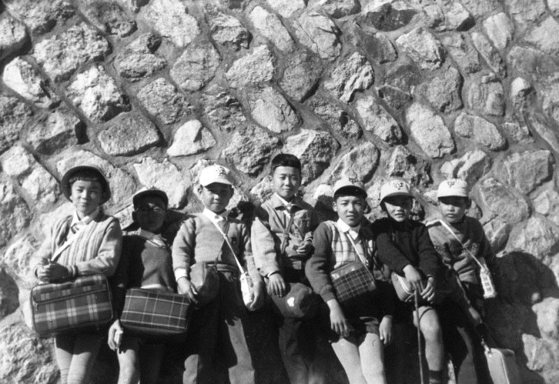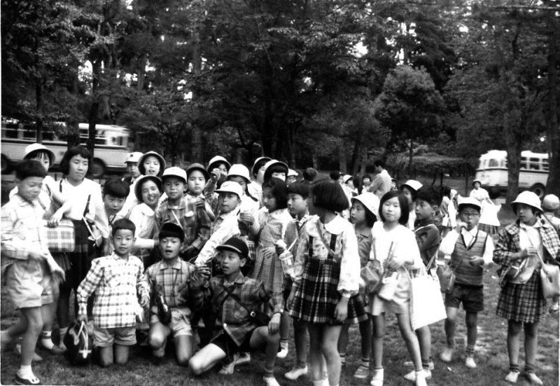 | (写真上)校外学習で蓬莱峡へ=5年1組の男子。昭和36年11月10日。 |
