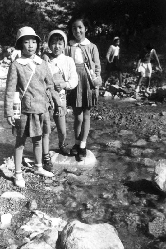 | (写真上)校外学習で蓬莱峡へ。左から5年生の市谷、畑、武本。昭和36年11月10日。 |