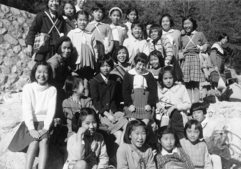 | 5年生の校外学習で蓬莱峡へ=1組の女子。昭和36年11月10日。 |