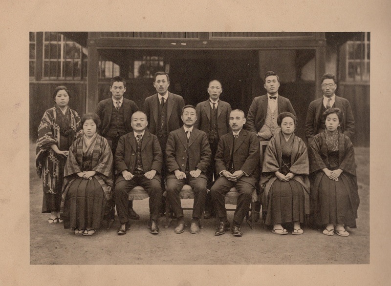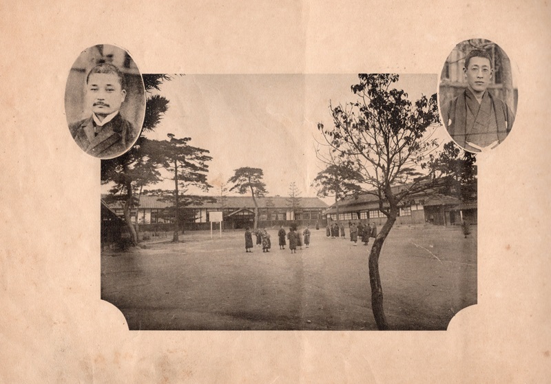 | 当時制服はなかったようです。全員和服で学生帽は着けていました |